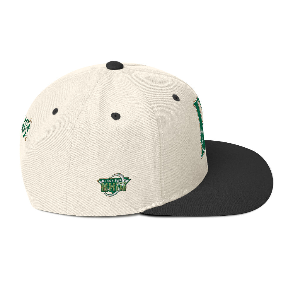 This hat is structured with a classic fit, flat brim, and full buckram. The adjustable snap closure makes it a comfortable, one-size-fits-most hat.